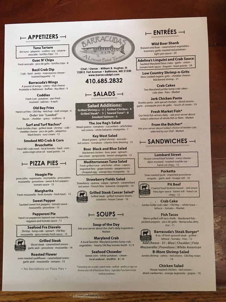 Welcome to Barracudas Locust Point Tavern, a gem in Baltimore's vibrant dining scene, specializing in New American seafood fare. Nestled at 1230 E Fort Ave, this casual tavern fuses local culture with a diverse menu designed to satisfy every palate. From succulent chicken pot pie that warms the heart to the fresh and flavorful blackened shrimp salad, your taste buds are in for a treat.
